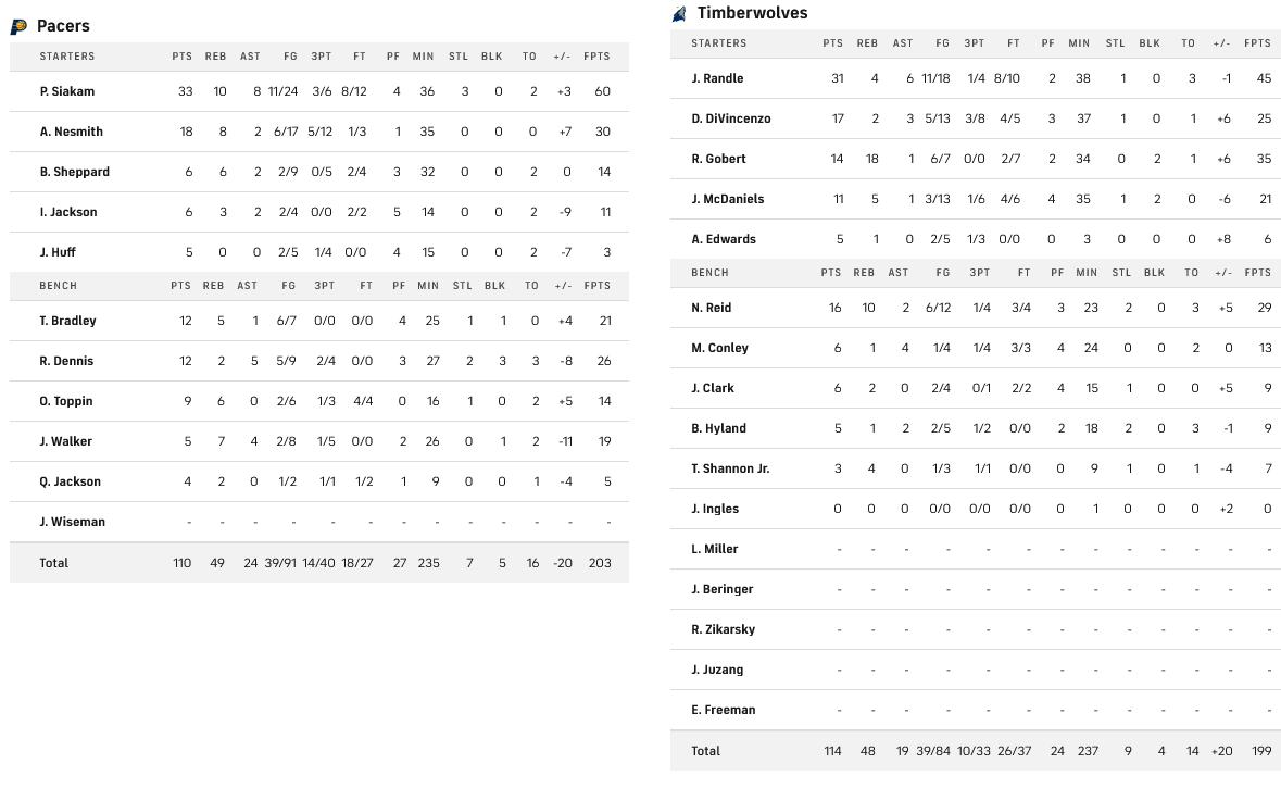 Εξαιρετική εμφάνιση από τον Ραντλ με 31 πόντους, με τον Γκομπέρ να έχει 14 πόντους και 18 ριμπάουντ και τον Ριντ να προσθέτει 16 πόντους και 10 ριμπάουντ.