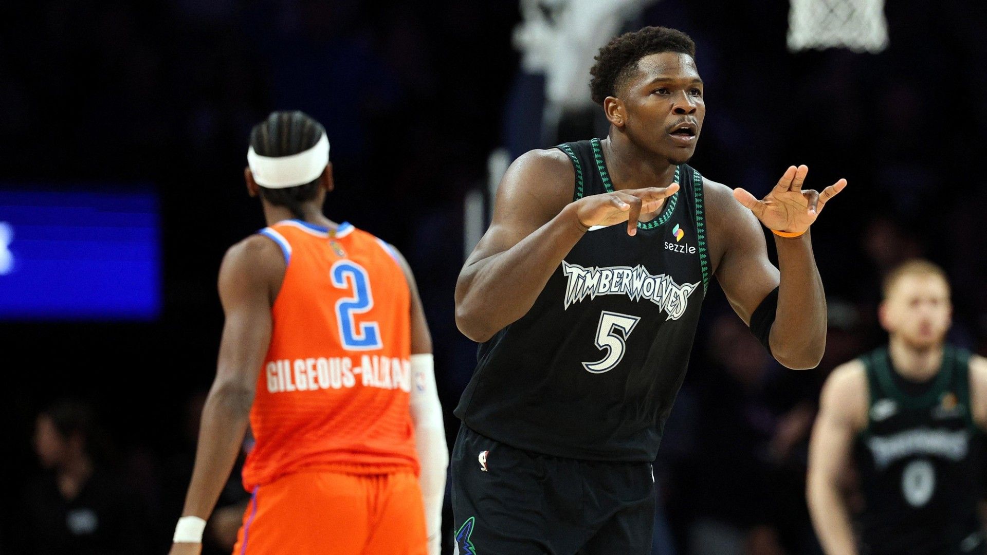 Οι Μινεσότα Τίμπεργουλβς κέρδισαν τους Οκλαχόμα Σίτι Θάντερ εντός έδρας με 123-111 και ο Έντουαρντς κέρδισε την άτυπη «μάχη» με τον Γκίλτζιους-Αλεξάντερ.