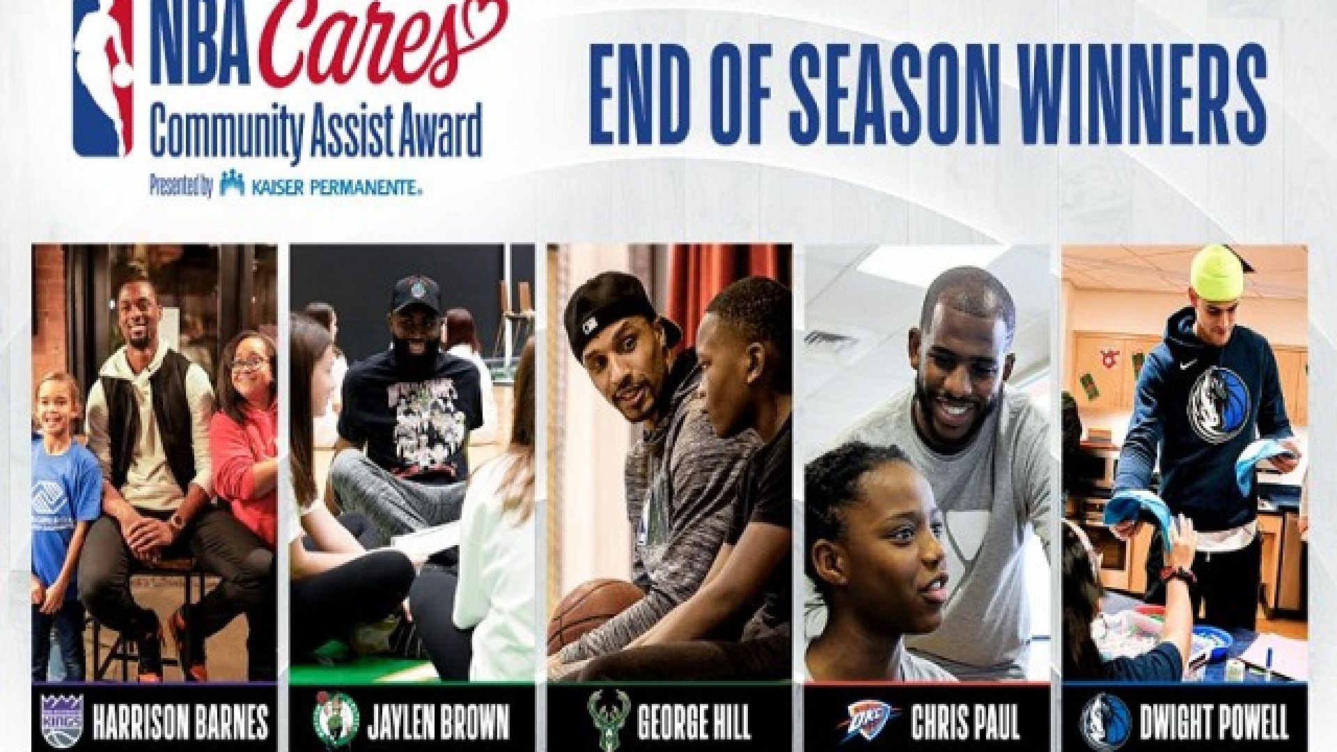 Συγκεκριμένα, το ΝΒΑ τίμησε τους Χάρισον Μπαρνς (Κινγκς), Τζέιλεν Μπράουν (Σέλτικς), Τζορτζ Χιλ (Μπακς), Κρις Πολ (Θάντερ) και Ντουάιτ Πάουελ (Μάβερικς), με το «NBA Cares Community Assist Award.