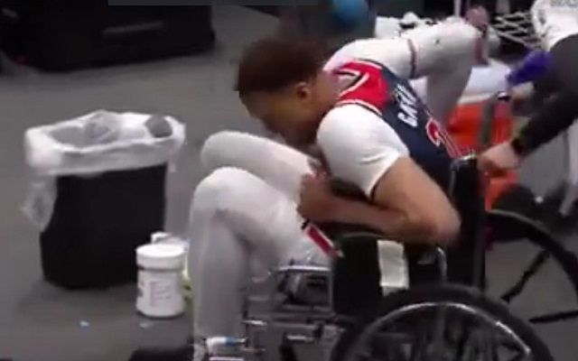 Ο σέντερ των Γουίζαρντς προσγειώθηκε άτσαλα σε μία διεκδίκηση της μπάλας και «γύρισε» άσχημα τον δεξιό του αστράγαλο.