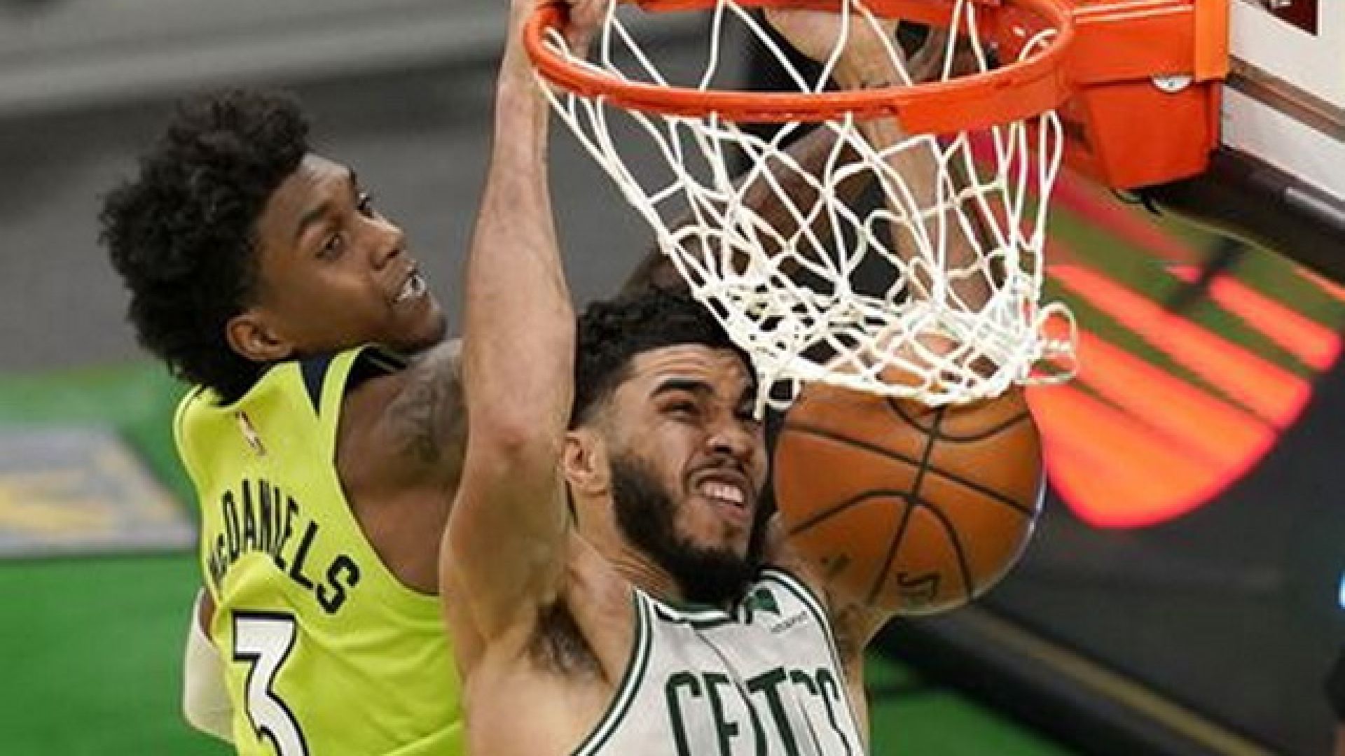 Οι Λύκοι έβαλαν δύσκολα στην ομάδα της Βοστόνης, προηγήθηκαν μέχρι και με 17 πόντους στην τρίτη περίοδο (62-79), με τον φόργουορντ των Κελτών να παίρνει την κατάσταση στα χέρια του, πετυχαίνοντας 53 πόντους, τους 18 εξ αυτών στην 4η περίοδο και στην παράταση της αναμέτρησης.