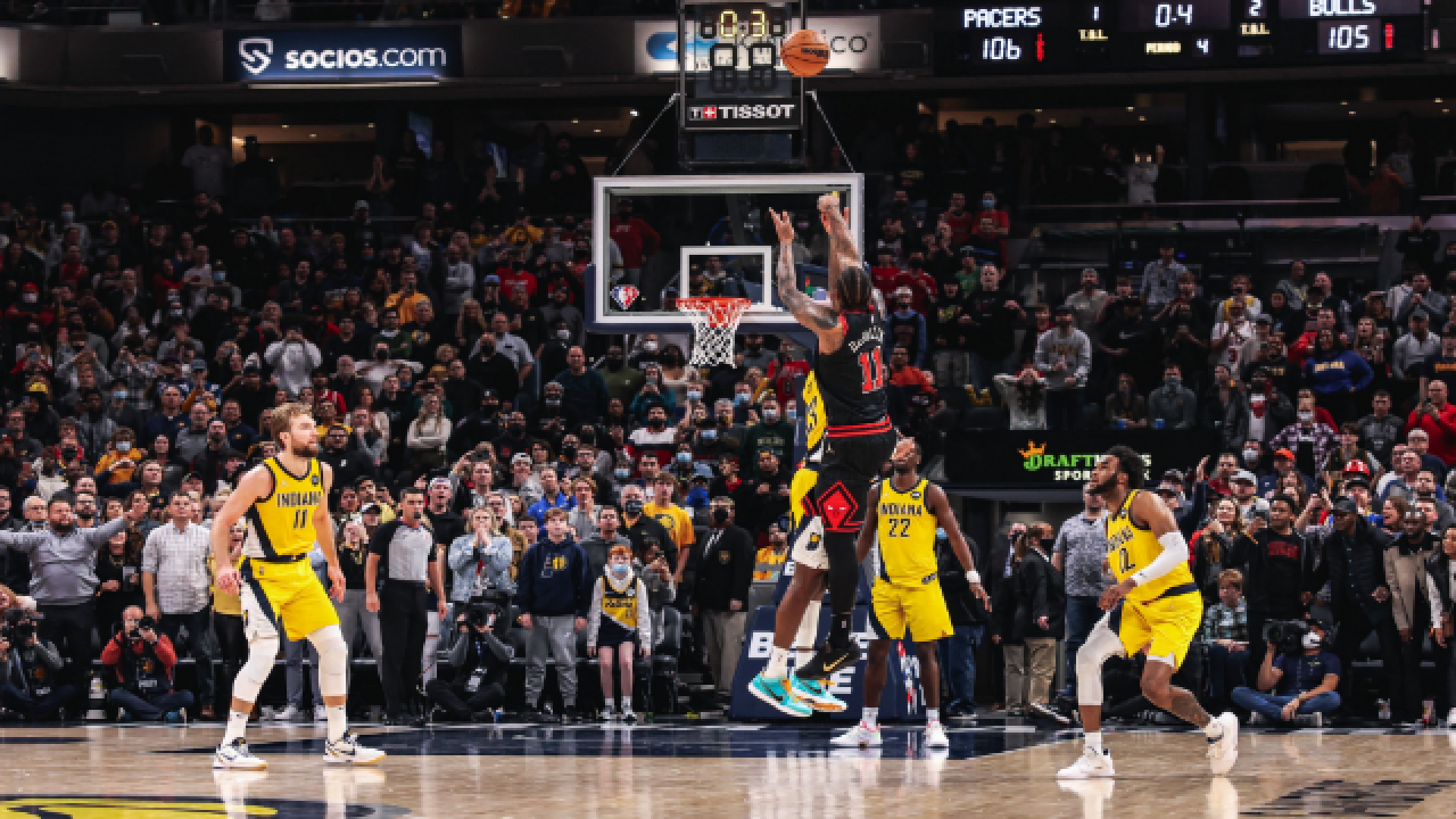 Με buzzer beater του ΝτεΜάρ ΝτεΡόζαν, οι Μπουλς επικράτησαν εκτός έδρας των Πέισερς με 108-106, με αποτέλεσμα να ανεβάσουν το ρεκόρ τους στο 23-10, ενώ η ομάδα από την Ιντιάνα έπεσε στο 14-22.