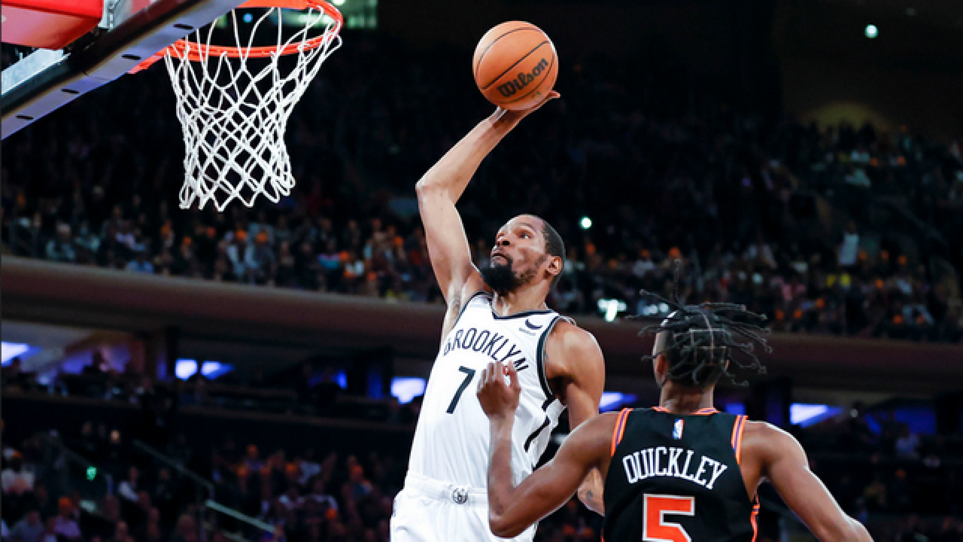Σε show του Κέβιν Ντουράντ εξελίχθηκε η αναμέτρηση των Νικς με τους Νετς, που βρήκε νικητές τους φιλοξενούμενους με 110-98.
