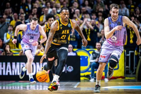 Σε ένα ματς-θρίλερ σχεδόν σε όλη τη διάρκειά του, η ΑΕΚ υπέταξε την Τόφας με 96-88 και έφτασε τις 5 νίκες σε ισάριθμα ματς, σφιχταγκαλιάζοντας την πρώτη θέση και το πλεονέκτημα έδρας στην επόμενη φάση του Basketball Champions League.