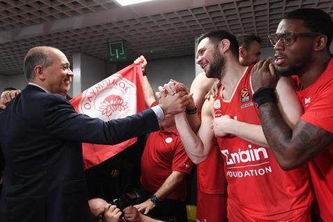 Ολυμπιακός: Οι πανηγυρισμοί μετά το «break» πρόκρισης και η χειραψία Παπανικολάου – Αγγελόπουλου (vid)