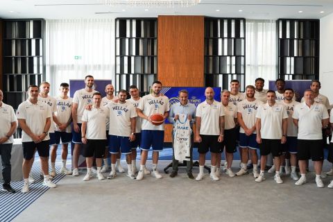 Την υποστήριξή του έδειξε και τις ευχές του έδωσε ο πρωθυπουργός της χώρας και φίλος του μπάσκετ Κυριάκος Μητσοτάκης , το απόγευμα της Δευτέρας (1/7) καθώς βρέθηκε στο ξενοδοχείο της αποστολής της εθνική μας ομάδας.