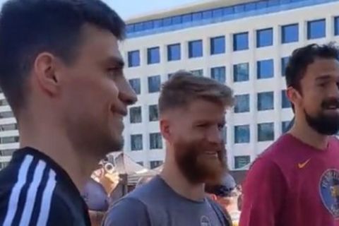 Ολυμπιακός – Οι Αγγελόπουλοι υποδέχθηκαν την αποστολή στην «Zalgirio Arena» για την τελευταία προπόνηση (vid, pics)