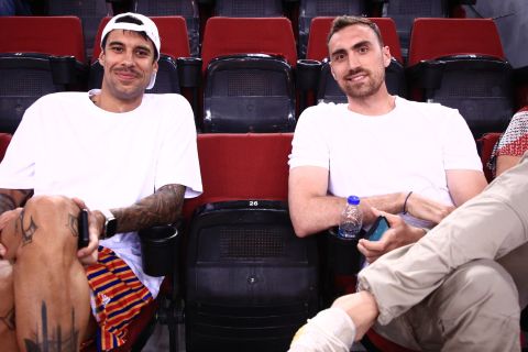 Basket League: O Πρίντεζης μαζί με τον Μιλουτίνοβ παρακολουθούν τον Game 1 του Ολυμπιακός-Παναθηναϊκός