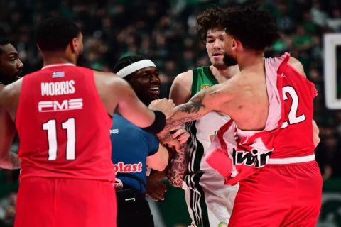Λίγο πριν ολοκληρωθεί το πρώτο ημίχρονο στο ντέρμπι ανάμεσα στον Παναθηναϊκό AKTOR και τον Ολυμπιακό, επικράτησε ένταση στο παρκέ, με τους παίκτες των δύο ομάδων να εμπλέκονται σε σύρραξη.