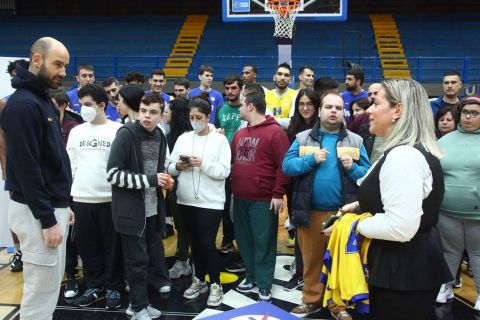 Ο Βασίλης Σπανούλης και οι παίκτες του υποδέχθηκαν στο «Α. Παπανδρέου τα παιδιά από την δομή του Εξειδικευμένου Κέντρου Ατόμων με ΔΑΦ «Ηλίανθος», μοιράζοντας χαμόγελα στους μικρούς τους φίλους.