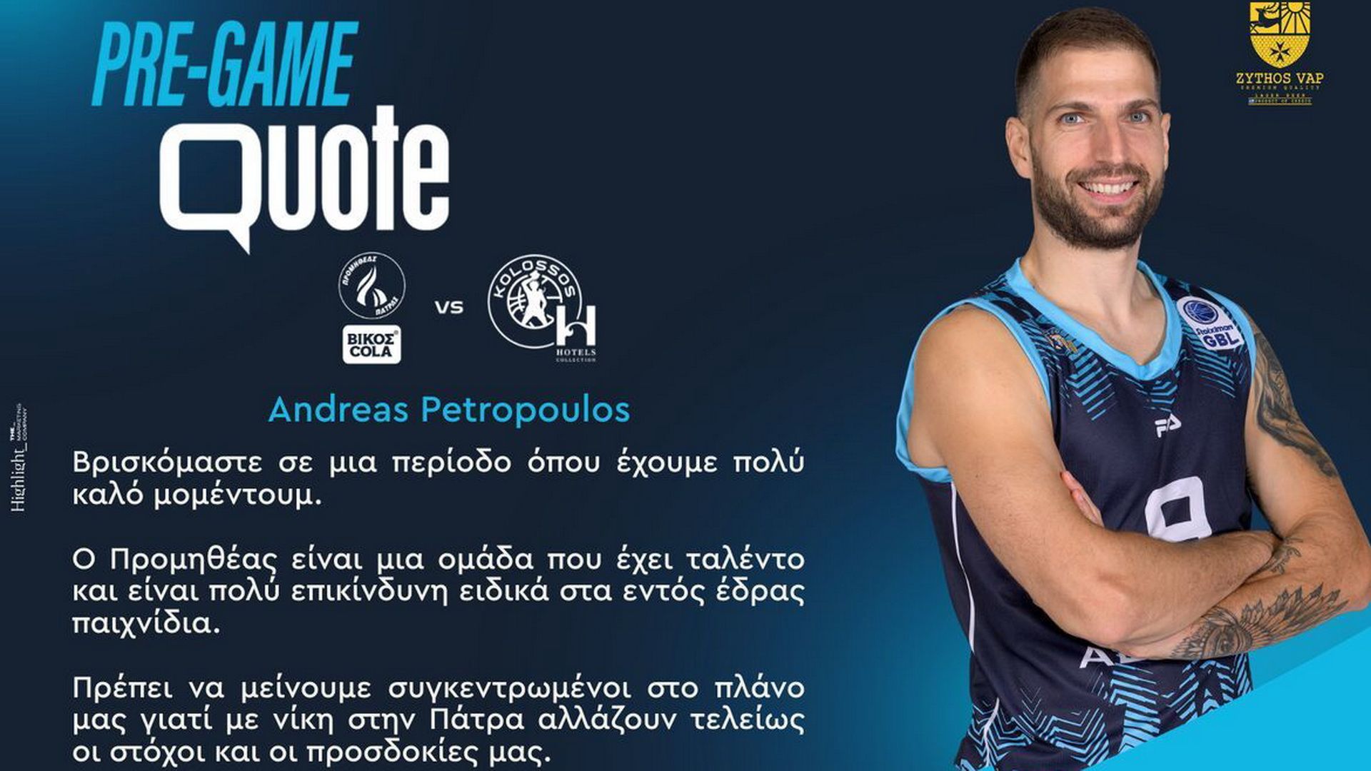 Ο Κολοσσός δοκιμάζεται στην έδρα του Προμηθέα, το απόγευμα του Σαββάτου (21/3, 16:00) και ο Ανδρέας Πετρόπουλος, με δηλώσεις στην ιστοσελίδα της ομάδας της Ρόδου, μιλά για το επερχόμενο ματς της Πάτρας.