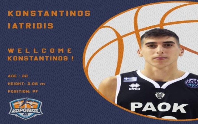 Τον 21χρονο πάουερ φόργουορντ Κωνσταντίνο Ιατρίδη απέκτησε ο Κόροιβος Αμαλιάδας.