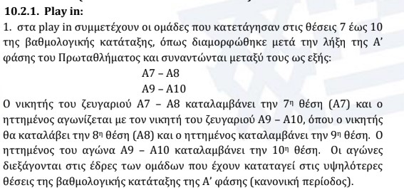 Μία από τις σημαντικότερες αλλαγές ενόψει της νέας σεζόν είναι η διαδικασία του Play In Tournament, στο οποίο θα συμμετέχουν οι ομάδες που θα τερματίσουν στις θέσεις 7-10 της κανονικής περιόδου, με τις δύο νικήτριες να προχωρούν στα Play Offs, μαζί με τις έξι πρώτες της regular season.
