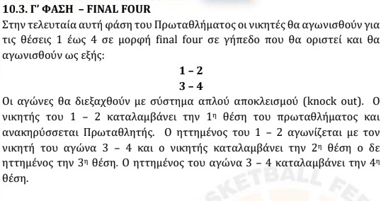 Αλλαγές θα έχουμε και στον τρόπο διεξαγωγής του Final Four, στο οποίο θα βρεθούν οι τέσσερις νικήτριες των Play Offs.
