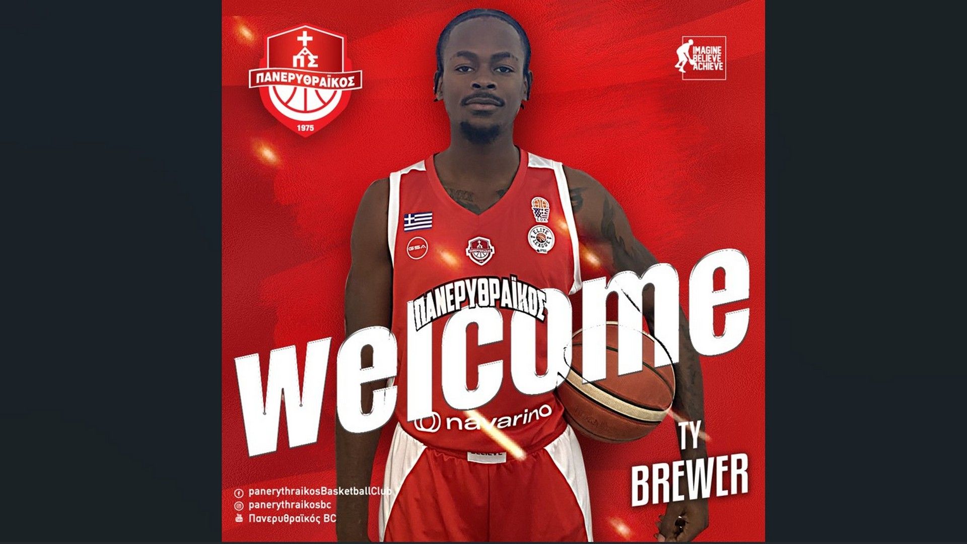 Η διοίκηση του Πανερυθραϊκού ΑΣ ανακοινώνει την έναρξη της συνεργασίας της με τον αθλητή Τάι Μπρούερ, ο οποίος έρχεται για να ενισχύσει την ομάδα μας στο υπόλοιπο της τρέχουσας αγωνιστικής περιόδου, όντας ο πρώτος αμιγώς Αμερικανός στην ιστορία του συλλόγου μας.