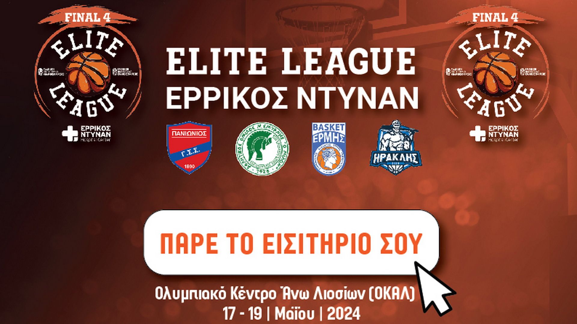 Η συναρπαστική σεζόν της Elite League Ερρίκος Ντυνάν φτάνει στο αποκορύφωμά της. Το Ολυμπιακό Κέντρο Άνω Λιοσίων στις 17 και 19 Μαΐου φιλοξενεί το Final 4, που θα κρίνει τον πρωταθλητή και τα δύο εισιτήρια ανόδου στην Basket League.