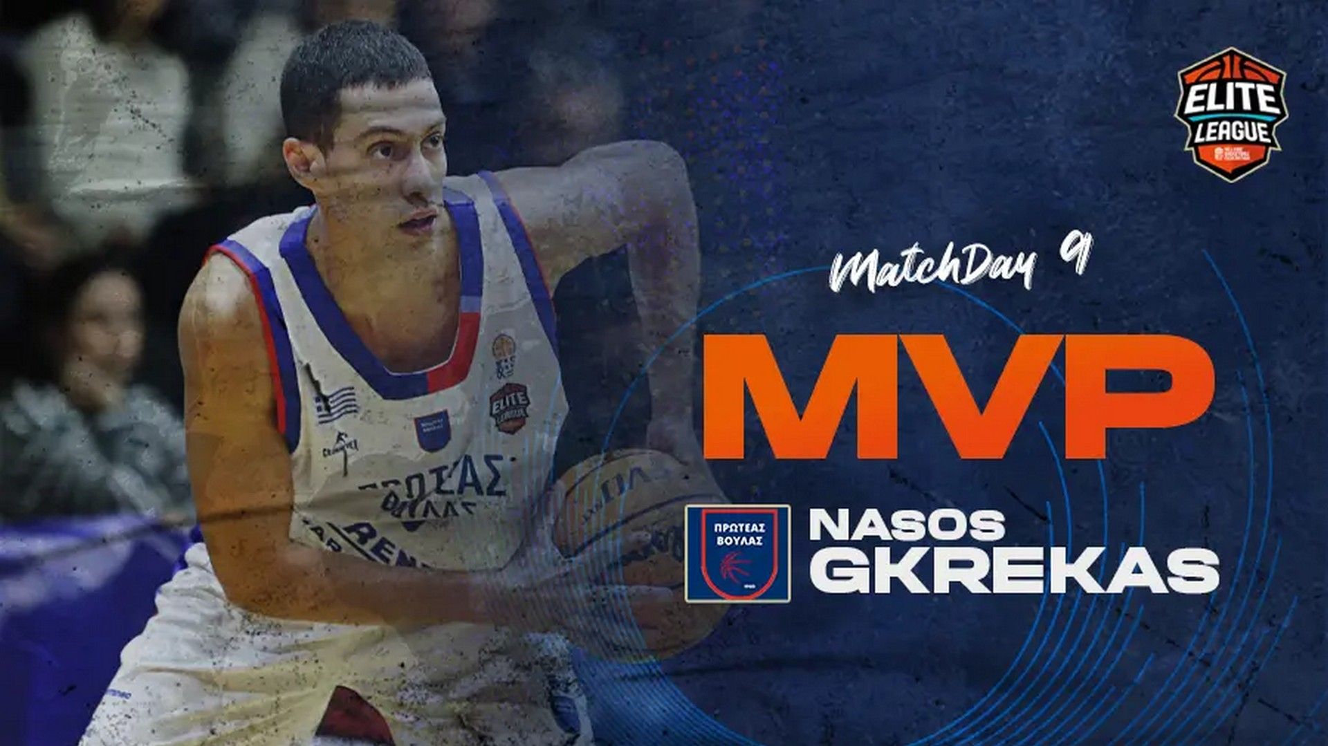 Ο Νάσος Γκρέκας του Πρωτέα Βούλας αναδείχθηκε πολυτιμότερος παίκτης της ένατης αγωνιστικής στην Elite League, καθώς συγκέντρωσε 45 βαθμούς στο σύστημα αξιολόγησης, μεγαλύτερη επίδοση του Σαββατοκύριακου και ως τώρα της σεζόν στο πρωτάθλημα.