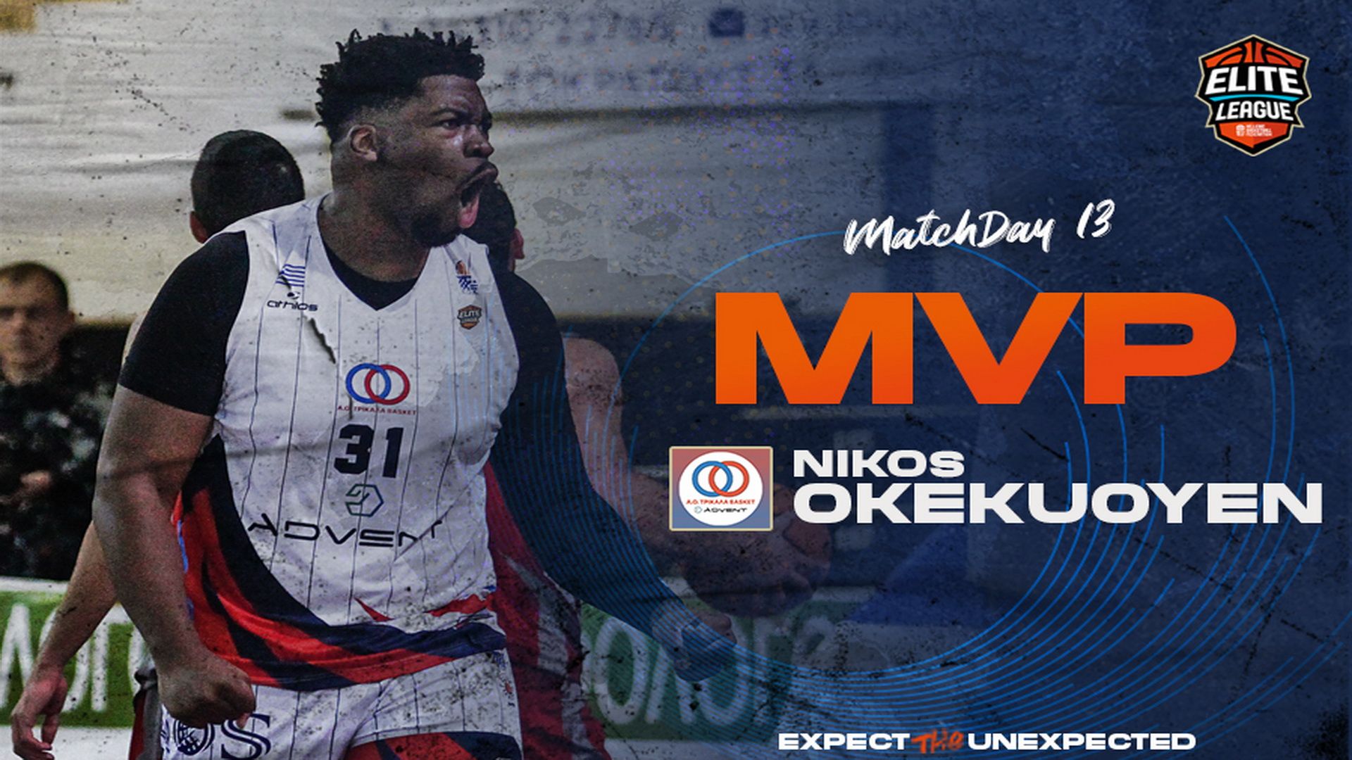 Στα χέρια του Νίκου Οκεκουόγεν κατέληξε το βραβείο του πολυτιμότερου παίκτη της 13ης αγωνιστικής της Elite League.