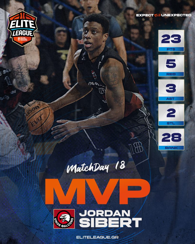 Στα χέρια του Τζόρνταν Σάιμπερτ κατέληξε το βραβείο του πολυτιμότερου παίκτη της 18ης αγωνιστικής της Elite League, μετά την εξαιρετική του εμφάνιση, στην νίκη του Βίκου επί της Δόξας Λευκάδας.