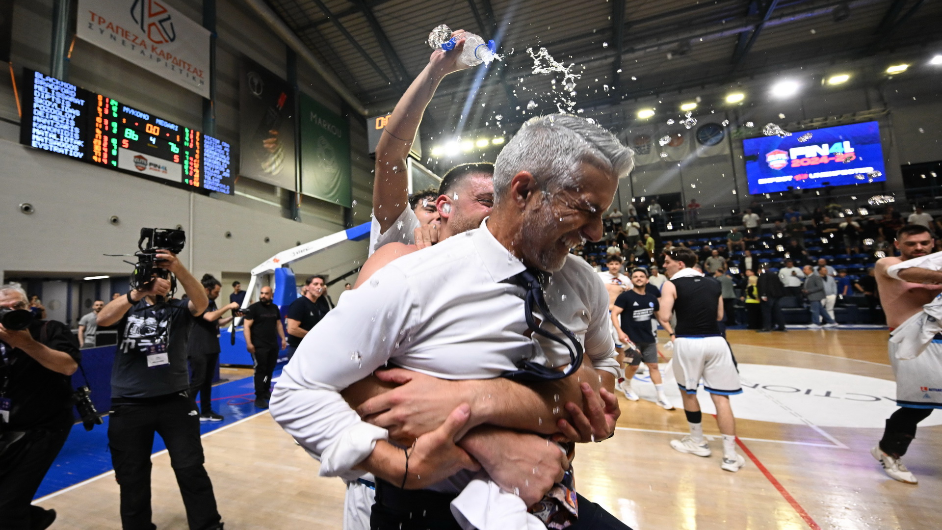 Η Μύκονος γιορτάζει την άνοδο της στην GBL, για πρώτη φορά στην ιστορία της, με τους νησιώτες να σηκώνουν το βαρύτιμο τρόπαιο του πρωταθλητή της Elite League, μετά την νίκη τους επί της Μεγαρίδας και να… μπουγελώνουν τον αρχιτέκτονα της μεγάλης αυτής επιτυχίας, τον Βαγγέλη Ζιάγκο.