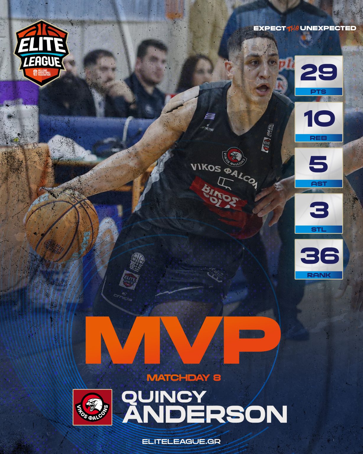 Ο Κουίνσι Άντερσον αναδείχθηκε πολυτιμότερος παίκτης στην όγδοη αγωνιστική της Elite League.