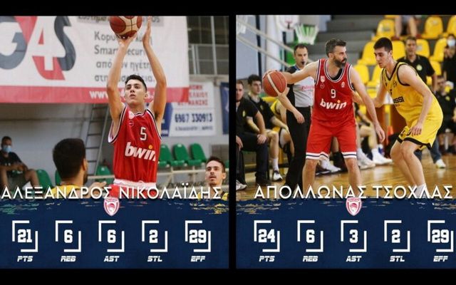 Ο λόγος για τον Απόλλωνα Τσόχλα και τον Αλέξανδρο Νικολαΐδη, καθώς αμφότεροι συγκέντρωσαν 29 βαθμούς στο σύστημα ranking, στην νίκη των Πειραιωτών με 96-94 επί του Αμαρουσίου.