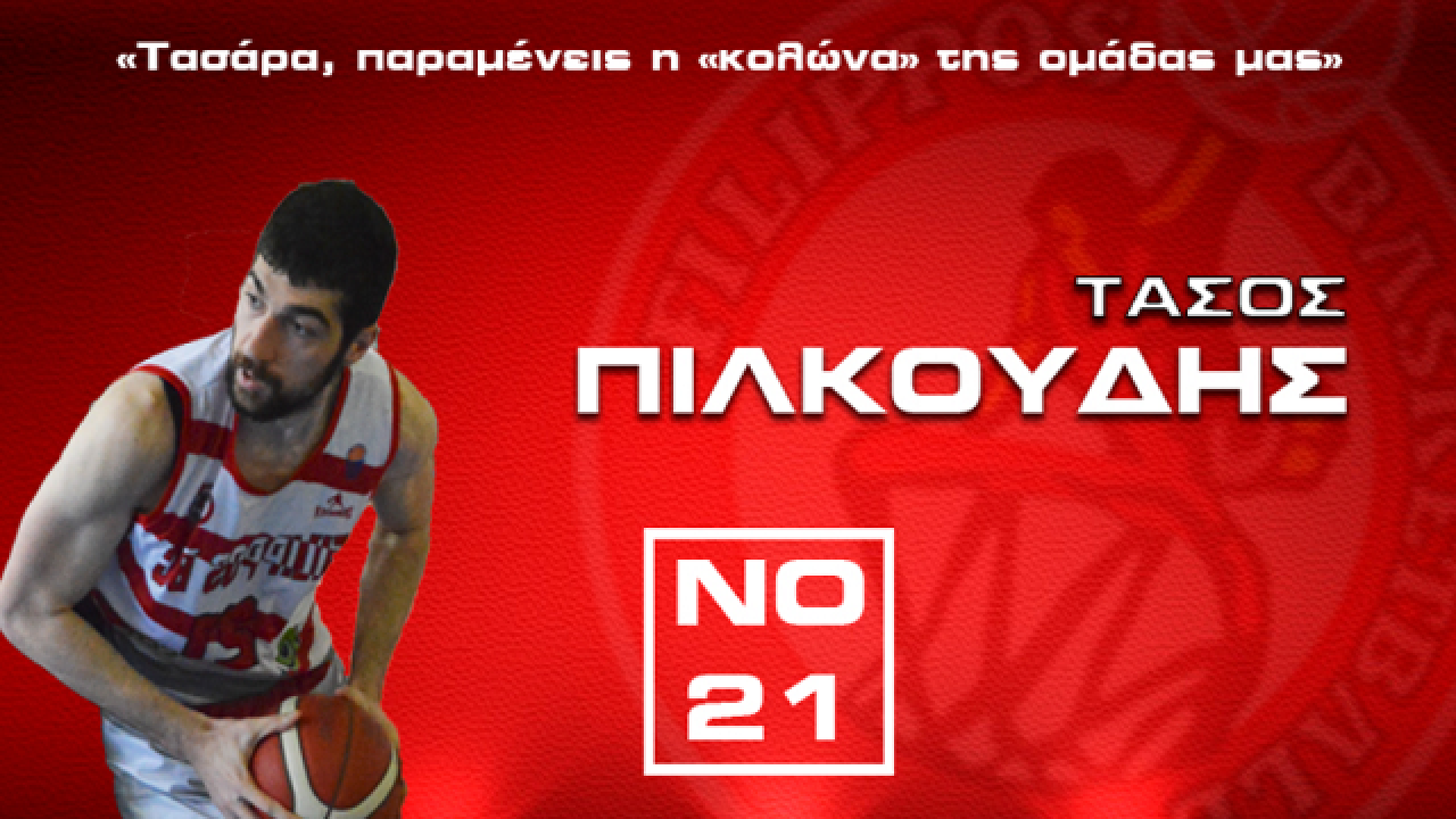 Η ΔΕ του τμήματος καλαθοσφαίρισης με χαρά ανακοινώνει την ανανέωση της συνεργασίας της με τον Τάσο Πιλκούδη. Ο 26χρονος (11/10/1995) Center θα φοράει την ερυθρόλευκη φανέλα με το Νο 21 για δεύτερη συνεχόμενη χρονιά, μετρώντας τη σαιζόν που μόλις τελείωσε 13 εμφανίσεις κι έχοντας 8ppg και 6rpg σε 23 λεπτά συμμετοχής.