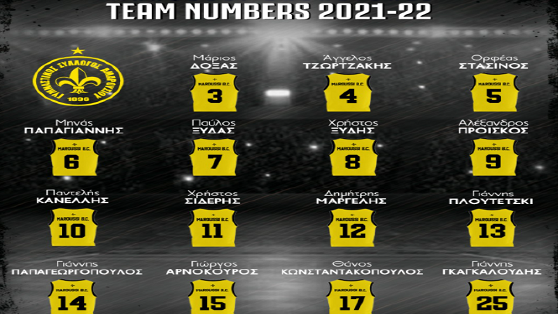 Το Μαρούσι ανακοίνωσε τα νούμερα των παικτών της ομάδας για τη νέα σεζόν, μία εβδομάδα περίπου πριν την έναρξη της σεζόν .