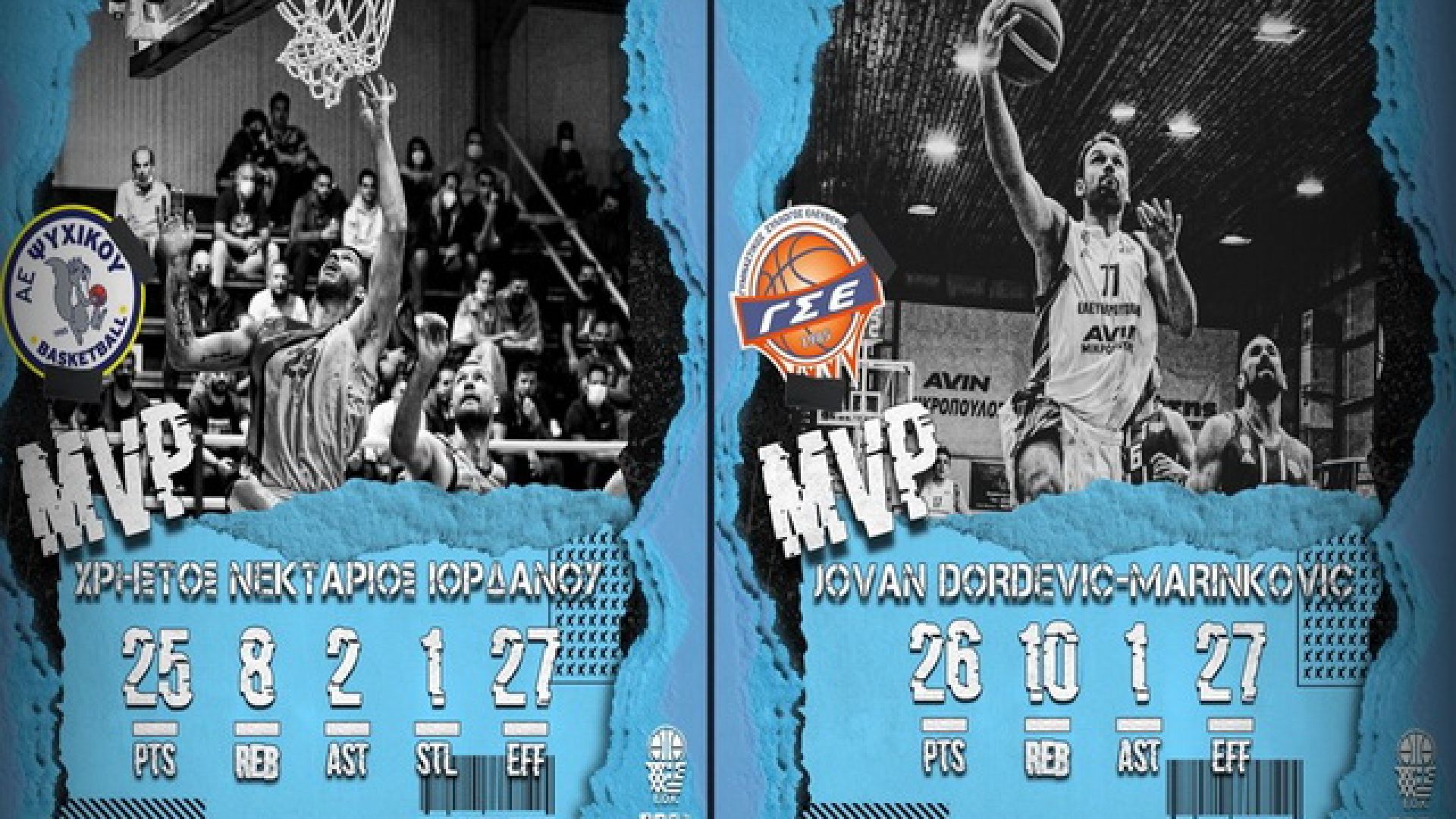 Από την άλλη ο Γιόβαν Μαρίνκοβιτς σημείωσε 26 πόντους με 9/11 δίποντα και 2/3 τρίποντα και μάζεψε δέκα ριμπάουντ στη νίκη της Ελευθερούπολης επί του Χαρ. Τρικούπη, φτάνοντας και αυτός στο 27 στην αξιολόγηση.