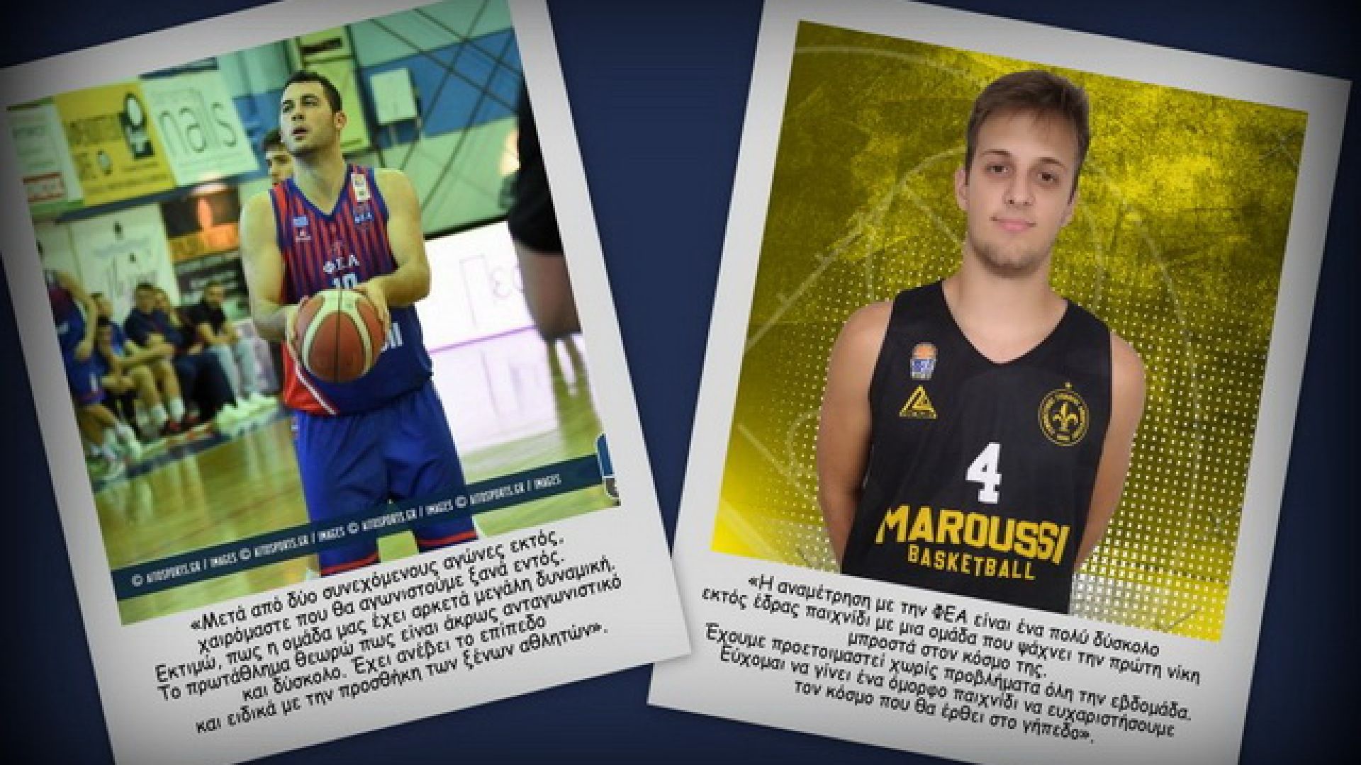Το Μαρούσι θέλει να δώσει συνέχεια στη μεγάλη νίκη της περασμένης Κυριακής επί της Ελευθερούπολης. «Η αναμέτρηση του Σαββάτου με την ομάδα της ΦΕΑ είναι ένα πολύ δύσκολο εκτός έδρας παιχνίδι για μας απέναντι σε μια ομάδα που ψάχνει την πρώτη νίκη μπροστά στον κόσμο της. Έχουμε προετοιμαστεί χωρίς προβλήματα όλη την εβδομάδα. Κοιτάμε το κάθε παιχνίδι ξεχωριστά και στο τέλος θα κάνουμε ταμείο. Εύχομαι να γίνει ένα όμορφο παιχνίδι να ευχαριστήσουμε το κόσμο που θα έρθει στο γήπεδο», τόνισε ο 18χρονος γκαρντ της ομάδας, Αναστάσης Κουτσονικόλας.