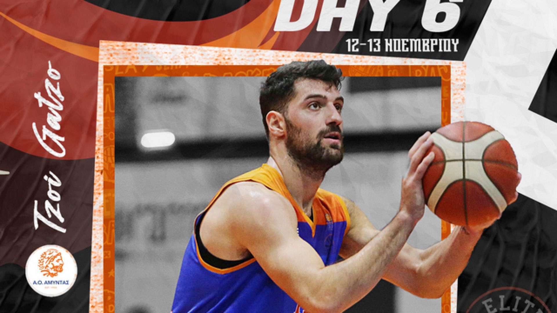 Η 6η αγωνιστική είχε τον δικό της MVP στο πρόσωπο του Τζόι Γκάτζο. O Αμύντας έκανε την πρώτη του νίκη στην Elite League Ερρίκος Ντυνάν με το 88-85 επί της Ελευθερούπολης εντός έδρας και ο Γκάτζο ήταν ο πολυτιμότερος για την ομάδα του και όχι μόνο με 23 πόντους (7/8 1π., 5/7 2π., 2/5 3π.), 8 (6-2) ριμπάουντ, 5 ασίστ, 1 κλέψιμο και 28 στην αξιολόγηση σε 25’27’’ συμμετοχής.