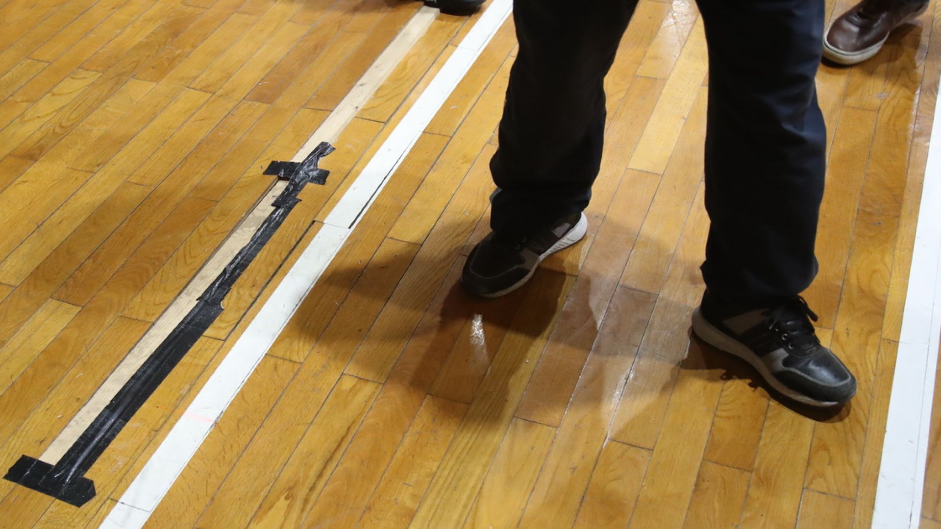 Με την έξοδο μας στον αγωνιστικό χώρο στις 19:00 αντιληφθήκαμε ότι στη πλευρά όπου έκανε προθέρμανση η ομάδα της Φ.Ε.Α στη γωνία το παρκέ είχε φουσκώσει και ανοίξει σε ένα αρκετά μεγάλο σημείο του με αποτέλεσμα να είναι άκρως επικίνδυνο για τη σωματική ακεραιότητα των παιχτών και των δύο ομάδων. Κατά την έξοδο των διαιτητών στον αγωνιστικό χώρο ενημερώσαμε τους διαιτητές της αναμέτρησης και ξεκίνησε έπειτα ένα γαϊτανάκι διαβουλεύσεων ανάμεσα στους διαιτητές και τους παράγοντες της Φ.Ε.Α οι οποίοι αν και είχαν δει το πρόβλημα δεν είχαν προχωρήσει σε κάποια κίνηση επιδιόρθωσης του. Στις 19:50 μας κάλεσε ο πρώτος διαιτητής της αναμέτρησης κύριος Κατραχούρας και μας ενημέρωσε ότι το παιχνίδι δεν θα ξεκινήσει στην ώρα του και ότι οι υπεύθυνοι της Φ.Ε.Α έχουν καλέσει τεχνικό να δει το παρκέ. Ο τεχνικός ήρθε στις 20:15 και φυσικά όπως ήταν αναμενόμενο δεν μπορούσε να επιδιορθωθεί το πρόβλημα. Στις 20:30 η ομάδα μας αποσύρθηκε στο αποδυτήριο και λίγα λεπτά αργότερα το παιχνίδι αναβλήθηκε και επίσημα με υπαιτιότητα του γηπεδούχου σωματείου.