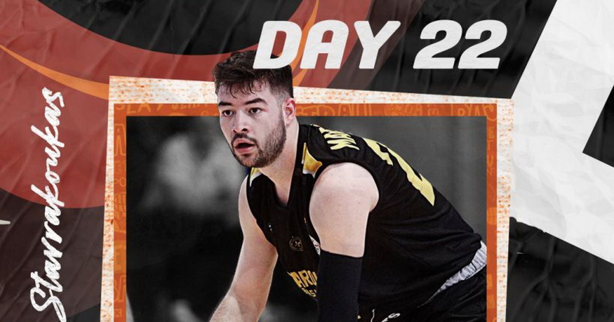 Στα χέρια του Βασίλη Σταυρακούκα κατέληξε το βραβείο του πολυτιμότερου παίκτη της 22ης αγωνιστικής της Elite League.