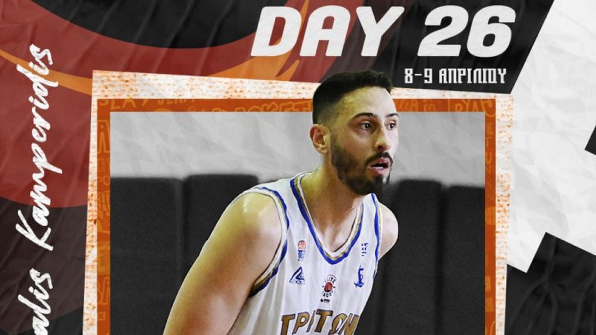 Ο Μιχάλης Καμπερίδης ήταν ο πολυτιμότερος παίκτης της 26ης αγωνιστικής στην Elite League Ερρίκος Ντυνάν. Ο πάουερ φόργουορντ/σέντερ του Τρίτωνα στη νίκη της ομάδας του επί της Ελευθερούπολης με 95-84 είχε 29 πόντους με 4/5 βολές, 5/6 δίποντα και 5/6 τρίποντα, καθώς επίσης 11 ριμπάουντ, 2 ασίστ, 2 τάπες και 5 κερδισμένα φάουλ σε 37:13. Έτσι ο 29χρονος άσος συγκέντρωσε 38 βαθμούς στο σύστημα αξιολόγησης, περισσότερους από κάθε άλλον παίκτη στην 26η αγωνιστική.