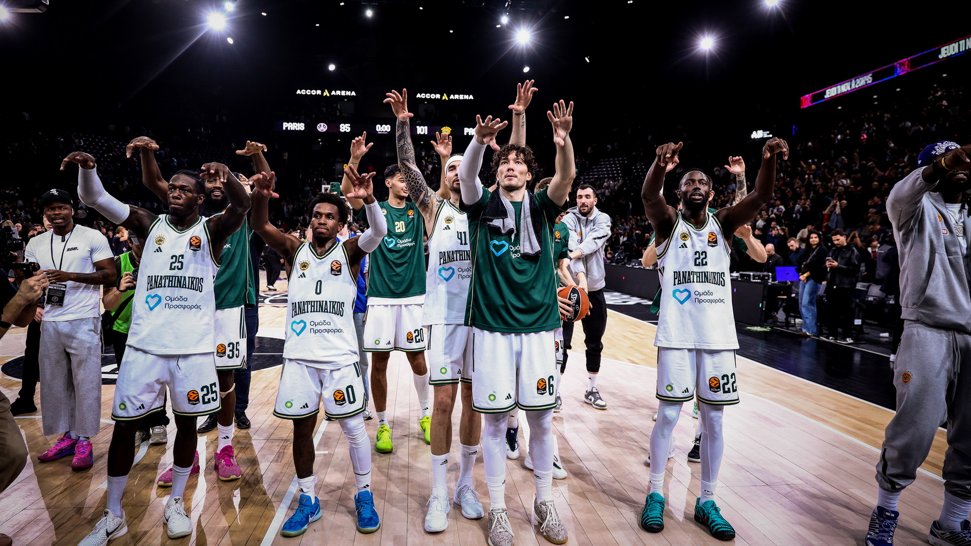 Εννέα εύστοχα τρίποντα, ισάριθμες ερωτήσεις στον ομογενή γκαρντ του Ολυμπιακού.