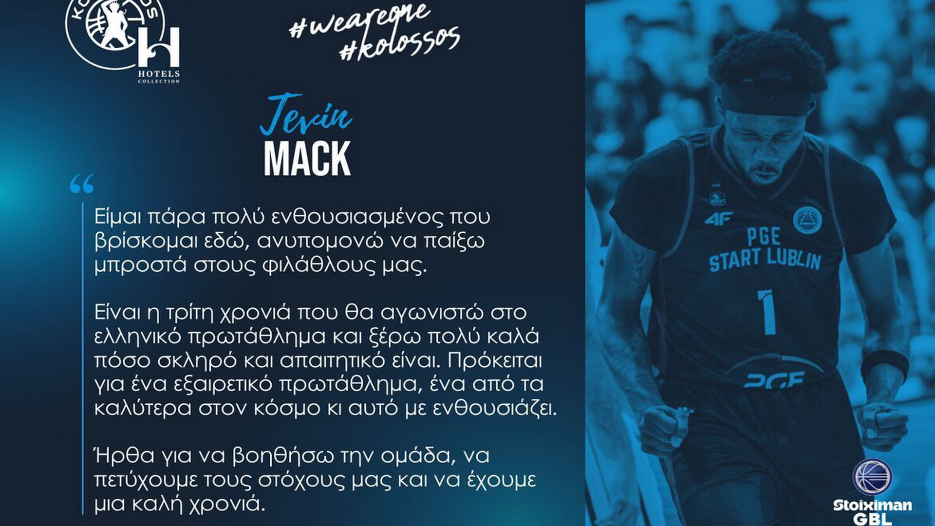 Ο Τέβιν Μακ θα φορά την φανέλα του Κολοσσού, με τον νέο παίκτη της ομάδας της Ρόδου να μην κρύβει τον ενθουσιασμό του για την νέα σελίδα στην καριέρα του.