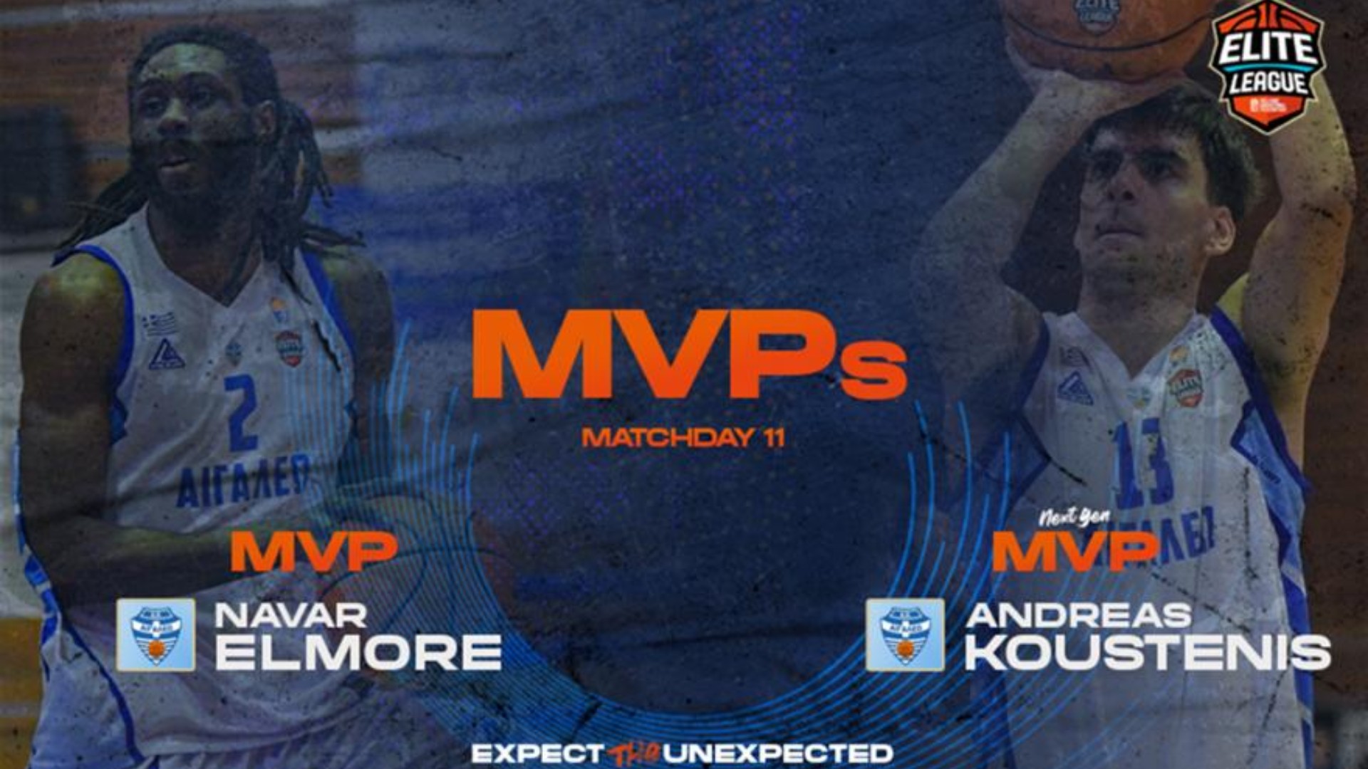 Οι δύο παίκτες του Αιγαλέου, Ναβάρ Έλμορ και ο Ανδρέας Κουστένης, πήραν τα βραβεία της 11ης αγωνιστικής στην Elite League.