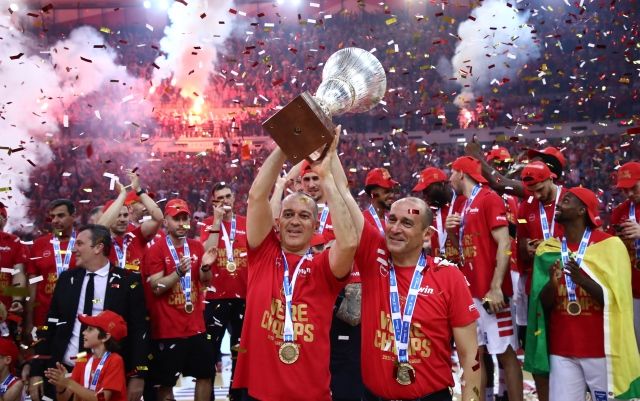 Ένα ξέφρενο πάρτι στήθηκε στο παρκέ του Σταδίου Ειρήνης και Φιλίας, αμέσως μετά το φινάλε του Game 3 με τον Παναθηναϊκό. Άμεσα στήθηκε η εξέδρα η οποία υποδέχθηκε τους προέδρους του Ολυμπιακού Παναγιώτη και Γιώργο Αγγελόπουλο, τον Γιώργο Μπαρτζώκα και το τεχνικό επιτελείο του, καθώς και τους παίκτες του Ολυμπιακού.