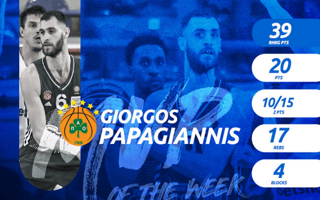 Ο Γιώργος Παπαγιάννης ήταν ο κύριος λόγος που ο Παναθηναϊκός απέφυγε την γκέλα στην Νίκαια, απέναντι στον Ιωνικό, με τον Έλληνα σέντερ να αναδεικνύεται MVP της εβδομάδας.