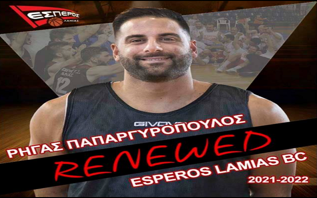 O Έσπερος Λαμίας ανακοίνωσε την ανανέωση συνεργασίας του με τον 35χρονο φόργουορντ, Ρήγα Παπαργυρόπουλο.