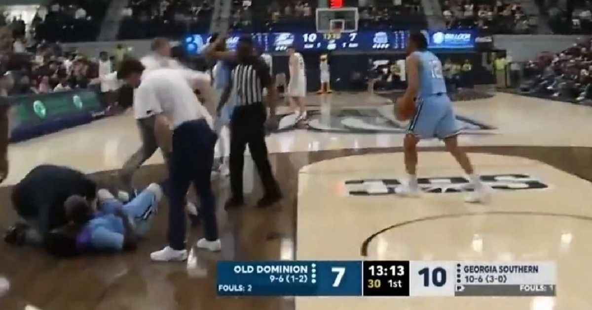 Members of the Old Dominion men’s basketball team watched in shock, and many held back tears, as their teammate Imo Essien collapsed during play in the first half of the contest. pic.twitter.com/KepBw9NxNk