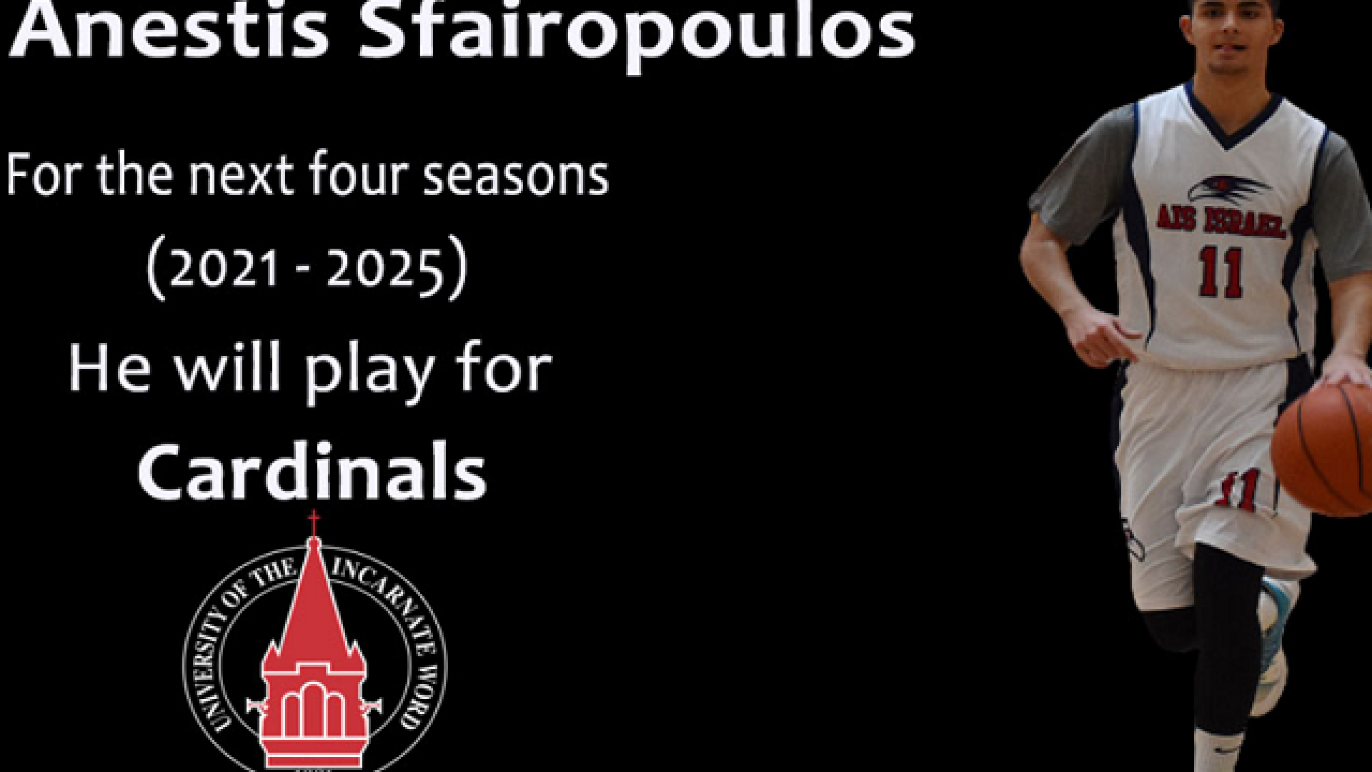 Ο Ανέστης Σφαιρόπουλος θα συνεχίσει την καριέρα του στις ΗΠΑ για τις επόμενες τέσσερις σεζόν (2021-25), καθώς πήρε υποτροφία για το University of the Incarnate Word. Ο 18χρονος κόμπο γκαρντ που θα αγωνιστεί με τους Cardinals, ήταν μέλος της U18 της Μακάμπι Τελ Αβίβ, ενώ κέρδισε δύο διαδοχικές χρονιές το βραβείο του MVP στο σχολικό πρωτάθλημα του Ισραήλ.