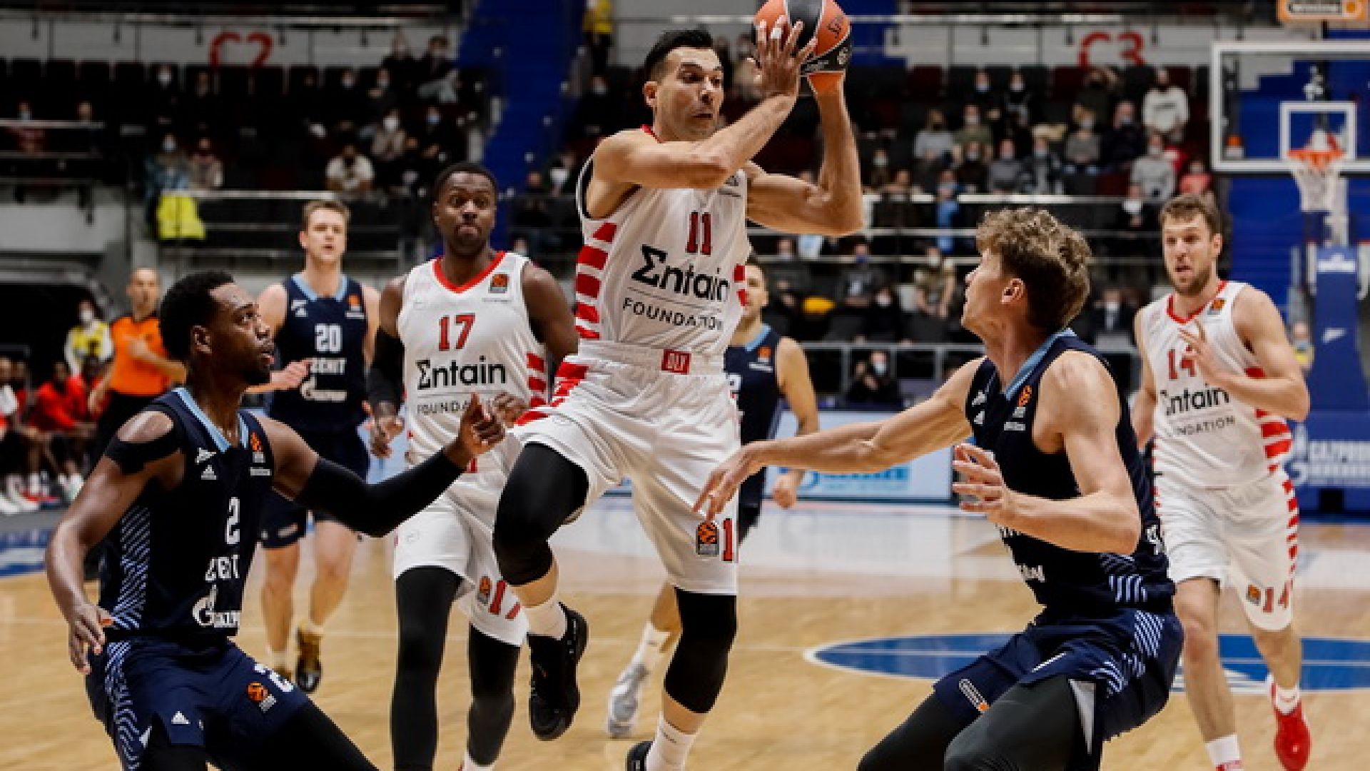 Η Zenit έχει θεωρητικά πιο δύσκολο πρόγραμμα από τον Ολυμπιακό, έχοντας και αυτή 11 αγώνες στη συνέχεια (6 εντός), εκ των οποίων οι 6 είναι με άμεσους ανταγωνιστές της. Η Ρωσική ομάδα είναι «δεμένη» και δείχνει σταθερότητα ως τώρα, δίχως πολλές «κακές ήττες», ωστόσο θα πρέπει στην τελική ευθεία να βρει τις λύσεις για να πάρει τις νίκες που θέλει. Και εκείνη ζητά το «μαγικό αριθμό» 6 για να φθάσει σε ρεκόρ 20 – 14. Δεν υπάρχει περιθώριο για εντός έδρας απώλειες από ομάδες όπως οι Villeurbannes, Παναθηναϊκός και Zalgiris, ενώ θα είναι σημαντικό να πετύχει τουλάχιστον μια νίκη σε Πειραιά ή Τελ Αβίβ και να κάνει το 2x2 επί της Unics, βάζοντας την από κάτω σε κάθε πιθανή ισοβαθμία. Η Zenit, με την επιστροφή και του Napier, δείχνει ικανή για τις 5 – 6 νίκες που χρειάζεται για την πρόκριση, αλλά θα πρέπει να κοιτάζει και πιο χαμηλά, γιατί δεν είναι απίθανο να «εκτροχιαστεί», αν δεν επικρατήσει σε κάποια από τα δύσκολα εκτός έδρας παιχνίδια που έχει (Maccabi 55%, Ολυμπιακός 81%, Fenerbache 64%, Bayern 54%, Armani 81%). Αν πάντως καταφέρει στους 5 επόμενους αγώνες να κάνει 4 νίκες, τότε θα μπορεί να κυνηγήσει ακόμη και το πλεονέκτημα έδρας! Η εκτίμησή μου είναι ότι θα καταλήξει κάπου μεταξύ 5ης και 7ης θέσης…