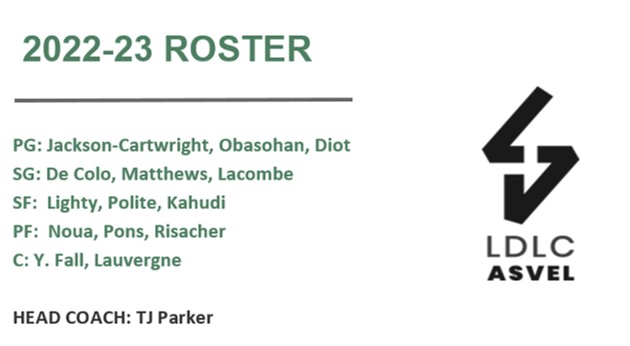 Η ASVEL, απόλυτη κυρίαρχος στη Γαλλία τα τελευταία χρόνια, ψάχνει για 4η σερί σεζόν μια διάκριση στην EL. O TJ Parker βρίσκεται ξανά στο τιμόνι της και για άλλο ένα καλοκαίρι προχώρησε σε πολλές αλλαγές στο ρόστερ. Φέτος τονώθηκε το εγχώριο στοιχείο με τους De Colo, Lauvergne, οι οποίοι μπορούν να κάνουν τη διαφορά, με τη σωστή διαχείρισή τους, ενώ προστέθηκαν και οι Polite, Pons, με βλέμμα τόσο στο μέλλον, όσο και στο παρόν, καθώς είναι forward, που μπορούν να αναπτυχθούν σταδιακά και να δώσουν λύσεις. Σε γνώριμα λημέρια επέστρεψε και ο Noua, ο οποίος αναμένεται να πάρει πολύ χρόνο στο 4 και μαζί με τον Fall, να συνθέσουν ένα δίδυμο με μέγεθος. Στο back court είχαμε τρεις επιλογές εκτός Euroleague, με έμφαση στα φυσικά / αθλητικά προσόντα (Obasohan, Matthews) και στο all-around παιχνίδι (Jackson-Cartwright). Η Villeurbanne είναι αρκετά αλλαγμένη, με το ρόστερ να συνδυάζει την εμπειρία με το νεανικό ενθουσιασμό. Δύσκολα θα μπορέσει να διεκδικήσει μια θέση στα Ρ/Ο, ωστόσο το project (αν διατηρηθεί ο κορμός στο μέλλον) μοιάζει ελκυστικό.