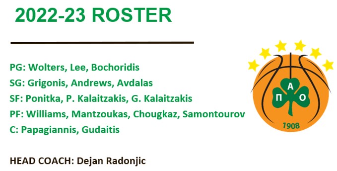 Αλλαγή σκηνικού και στον Παναθηναϊκό, με νέο προπονητή τον Radonjic, ο οποίος ευελπιστεί να επαναφέρει το … αμυντικό δόγμα στο τριφύλλι (αν και το υλικό δεν τον βοηθάει ιδιαίτερα) και πολλά νέα αποκτήματα, τα οποία θα χρειαστούν χρόνο να λειτουργήσουν ως σύνολο. Πάντως, το τριφύλλι φέτος φρόντισε να «καλύψει» αρκετές τρύπες των προηγούμενων χρόνων, με την απόκτηση δύο PG με εμπειρία Euroleague και αλληλοσυμπληρούμενα στοιχεία (Wolters – pass first guard, Lee – defensive facilitator). Σε πρώτη φάση φαίνεται να λείπει το iso game του Nedovic και το κάθετο παιχνίδι του Macon (με μεγάλη αποτελεσματικότητα και στο σουτ στην αρχή της περσινής σεζόν), με τον Andrews να χρειάζεται χρόνο για να προσαρμοστεί στη μετάβαση στην Euroleague. Ο Grigonis είναι αναβάθμιση στους wings και οι πράσινοι έχουν κάποιον off ball σουτέρ, παρόλο που δεν το έδειξε στον τελικό του Super Cup. Η απόκτηση Ponitka δίνει άλλον ένα χειριστή, ο οποίος θα μπορεί να δημιουργεί καταστάσεις για τον ίδιο και τους συμπαίκτες του. Το μεγάλο ερωτηματικό για τον Παναθηναϊκό είναι η front line, καθώς φαίνεται να λείπει ένας αθλητικός και σκληρός tweener με αμυντικό φίλτρο. Ο Gudaitis δείχνει ακόμη «βαρύς» και ανέτοιμος, ενώ ο Williams δεν φημίζεται για τις αμυντικές του επιδόσεις. Αν το τριφύλλι καταφέρει να διεκδικήσει μια θέση στην πρώτη 10αδα θα είναι επιτυχία, αλλά εκτιμώ ότι η πραγματική επιτυχία θα είναι να δοθεί χρόνος στον προπονητή και στο υλικό που έχει επιλέξει. Ο Παναθηναϊκός έχει καλύτερες προοπτικές από τις δύο προηγούμενες χρονιές, αλλά οι ομάδες δεν «χτίζονται» σε λίγους μήνες…