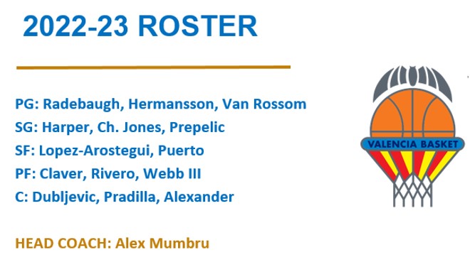 Last but not least η Valencia, μια ομάδα με σταθερά καλή παρουσία όσες φορές αγωνίστηκε στην Euroleague, που επανέρχεται μετά από 1 χρόνο και μεγάλο στόχο αυτό που δεν έχει καταφέρει τα τελευταία χρόνια, δηλαδή την είσοδό της στην 8αδα! Με νέο πρόσωπο στον πάγκο τον Mumbru και μια πλειάδα rookies (Radebaugh, Alexander, Harper, Webb, Rivero, Arostegui), η Ισπανική ομάδα έχει υψηλές βλέψεις. Με ένα μίγμα έμπειρων (Prepelic, Claver, Dubljevic, Jones, Van Rossom) και φιλόδοξων παικτών, το σύνολο του Mumbru αναμένεται να είναι και φέτος αρκετά δυνατό, ώστε να τερματίσει στη μέση της βαθμολογίας, αλλά μπορεί να κάνει το παραπάνω βήμα; Η απάντησή μου είναι ότι θα εξαρτηθεί από τον προπονητή της, που μετά το μέτριο πέρασμα από την Bilbao, καλείται να δώσει απαντήσεις και να κάνει step up στην Euroleague. Η ποιότητα της ομάδας είναι δεδομένη, ωστόσο χρειάζεται χρόνος για να ενσωματωθούν οι πολλοί νέοι παίκτες σε ένα περιβάλλον απαιτητικό, όπως αυτό της Euroleague. Αν η Valencia καταφέρει να μείνει σε τροχιά Ρ/Ο, θα πρόκειται για μεγάλη επιτυχία, ενώ πιθανή είσοδος στην 8αδα θα ισοδυναμεί με μίνι – θαύμα…