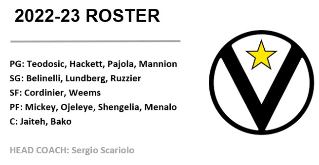Η Virtus επιστρέφει μετά από πολλά χρόνια, για να εδραιωθεί σταδιακά εκεί που ανήκει, δηλαδή στην elite της διοργάνωσης. Η άνοδος της τα τελευταία χρόνια είναι ραγδαία και τελικά πέρυσι, κατακτώντας το Eurocup, κέρδισε με το σπαθί της την είσοδό της στην Euroleague. Το ρόστερ βρίθει από ποιότητα και ο Sergio Scariolo, μετά τις επιτυχίες του σε επίπεδο εθνικών ομάδων, θέλει να φθάσει ψηλά και στην Euroleague! Η περιφερειακή γραμμή, εκτός της δεδομένης ποιότητάς της, διαθέτει παίκτες για όλα τα γούστα, που αλληλοσυμπληρώνονται ιδανικά. Ο Teodosic επιστρέφει με άλλα χρώματα, όπως και ο Lundberg, ο οποίος θα προσφέρει 2-way profile και σκορ, σε ένα πλήρες back court, το οποίο αποτελεί τη δύναμη πυρός της ομάδας στην επίθεση. Να μην ξεχάσουμε τον Pajola, που αναμένεται να έχει σημαντικό ρόλο χάρις στη hustle άμυνά του, αλλά και τον Mannion, ο οποίος μετά την περιπέτεια υγείας του, επιστρέφει δριμύτερος. Στα φτερά δεσπόζει ο ultra αθλητικός Cordinier και ο Weems με 3&D στοιχεία. Ο Ojeleye είναι ένας combo forward – δυναμίτης, που δεν αφήνει να φανεί το κενό του Shengelia, ενώ και οι υπόλοιποι ψηλοί Mickey, Bako, Jaiteh συνθέτουν μια πλήρη γραμμή ψηλών. Η Virtus διαθέτει και την ποιότητα και παίκτες με προσωπικότητα για να προκριθεί στα Ρ/Ο, είναι μια ομάδα που ήρθε για να μείνει και όλα τα κομμάτια βρίσκονται στη θέση τους για να τα καταφέρει… Απομένει να το δούμε πλέον και στο παρκέ, οι απαιτήσεις είναι υψηλές.