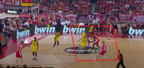 Ο Κάνααν έπαιξε high pick and roll με τον Βεζένκοβ και σκόραρε σε ένα απίστευτο σουτ – που ήταν παντελώς εκτός playbook, κάνοντας το 2/2 στα τρίποντα. Τότε η επίθεση του Ολυμπιακού απλοποιήθηκε μιας και η Φενέρ αναγκάστηκε να ανοίξει το γήπεδο. Fast Forward στο Game 2, όπου με μόλις 4 δευτερόλεπτα στο χρονόμετρο οι Πιερ, Καλάθης και Χέιζ δε ξεκολλάνε από τους Παπανικολάου, Κάναν και Βεζένκοφ και ο Μουσταφά Φαλ ανενόχλητος σκοράρει μέσα στη ρακέτα με αντίπαλο τον Κάρσεν Έντουαρντς.