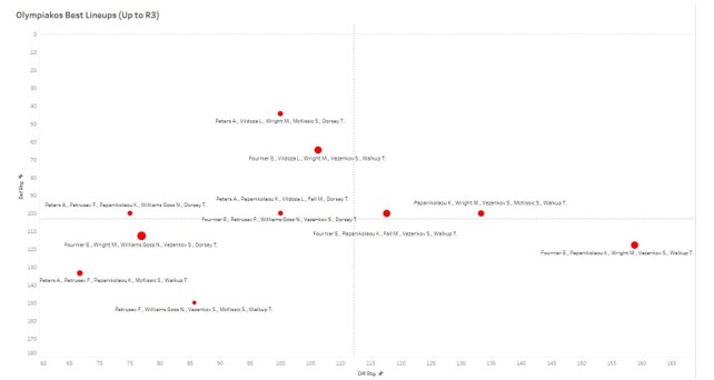 Βλέποντας τα ματς έγινε ολοφάνερο ότι η μετακίνηση του Φουρνιέ στο 2 και η είσοδος του Παπανικολάου στο 3,έδωσε στον Ολυμπιακό μέγεθος και versatility σας είπαμε, ο Φουρνιέ είναι μια χαρά αμυντικός για εδώ, μην ακούτε όποιον & όποιον, χωρίς να χάσει σε χειρισμό. Ίσα ίσα. Με αυτή τη τετράδα ο Μπαρτζώκας εκτός από μέγεθος, εξασφαλίζει άνεση στον αναγκαίο Γουόκαπ να υπάρχει στο παρκέ, ο Φουρνιέ είναι ελίτ χειριστής & ταυτόχρονα floor spacer, ενώ ο Παπ μπορεί να τα κάνει όλα.Η προσθήκη του Φαλ σε αυτούς έκανε αμέσως τον Ολυμπιακό να βγάζει υψηλή απόδοση, ενώ ο Ράιτ οδηγεί αυτή τη πεντάδα σε τρελά ύψη επιθετικά, αλλά και τρελά βάθη αμυντικά. Είναι κάτι που ΔΕΝ πρέπει να ρισκάρει ο ΟΣΦΠ σε αυτό το σημείο της σεζόν & τα λεπτά του Ράιτ πρέπει να διασφαλιστεί ότι θα έρχονται από τον πάγκο.