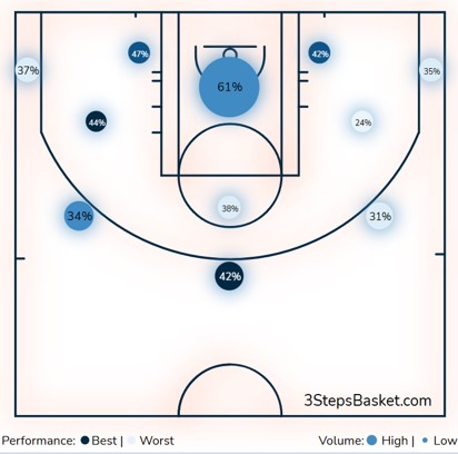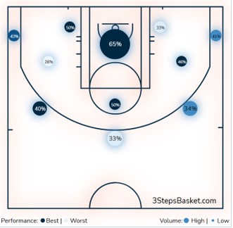 Ο Ολυμπιακός στην ενδεχόμενη απουσία Φουρνιέ, ψάχνει τον παίκτη που θα κάνει το step up. Τόσο στα κρίσιμα και μεγάλα σουτ αλλά και στο δημιουργικό κομμάτι. Η Μπάγερν όπως βλέπουμε και στο shot chart της, δέχεται τους περισσότερους πόντους από μέση απόσταση και κυρίως στη ρακέτα. Όχι ότι στο τρίποντο τα πηγαίνει καλύτερα. Η ομάδα του coach Μπαρτζώκα θα πρέπει να χτυπήσει στη ρακέτα και να πάει στο physicality. Οι ερυθρόλευκοι υπερτερούν και σε μέγεθος και σε ποιότητα.